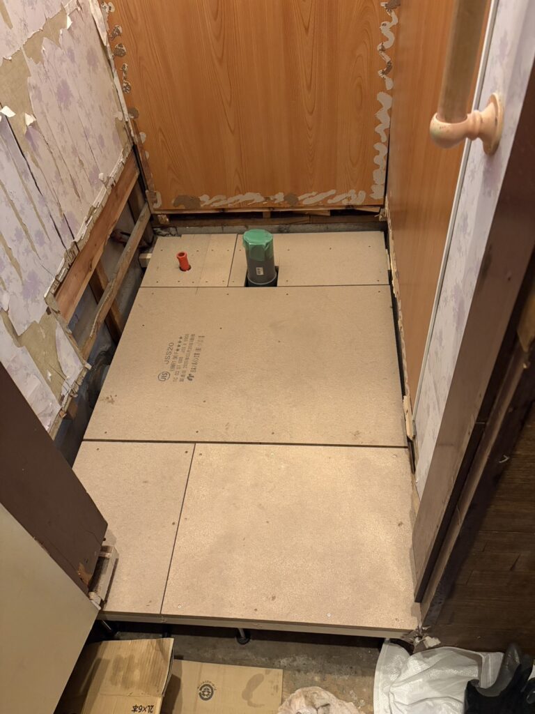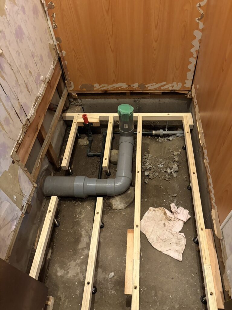 給水管の修理と床を張り替えました。